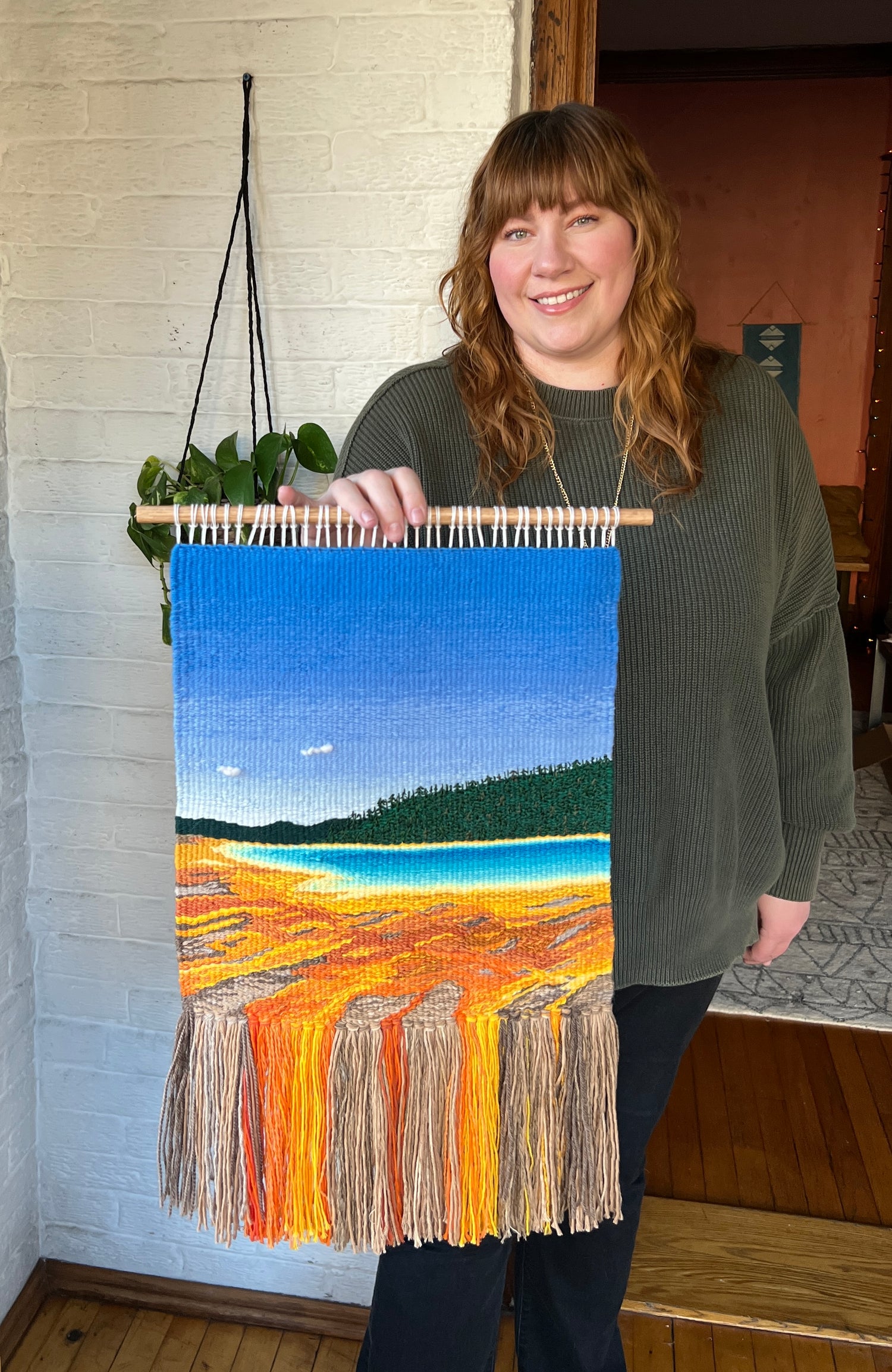 I began weaving a few years ago after a friend and fellow fiber artist gave me a weaving lesson, and I was immediately hooked. I’ve always loved skies and nature, so I found my love of landscape weaving pretty quickly, and that’s where my Painted Sky journey began.